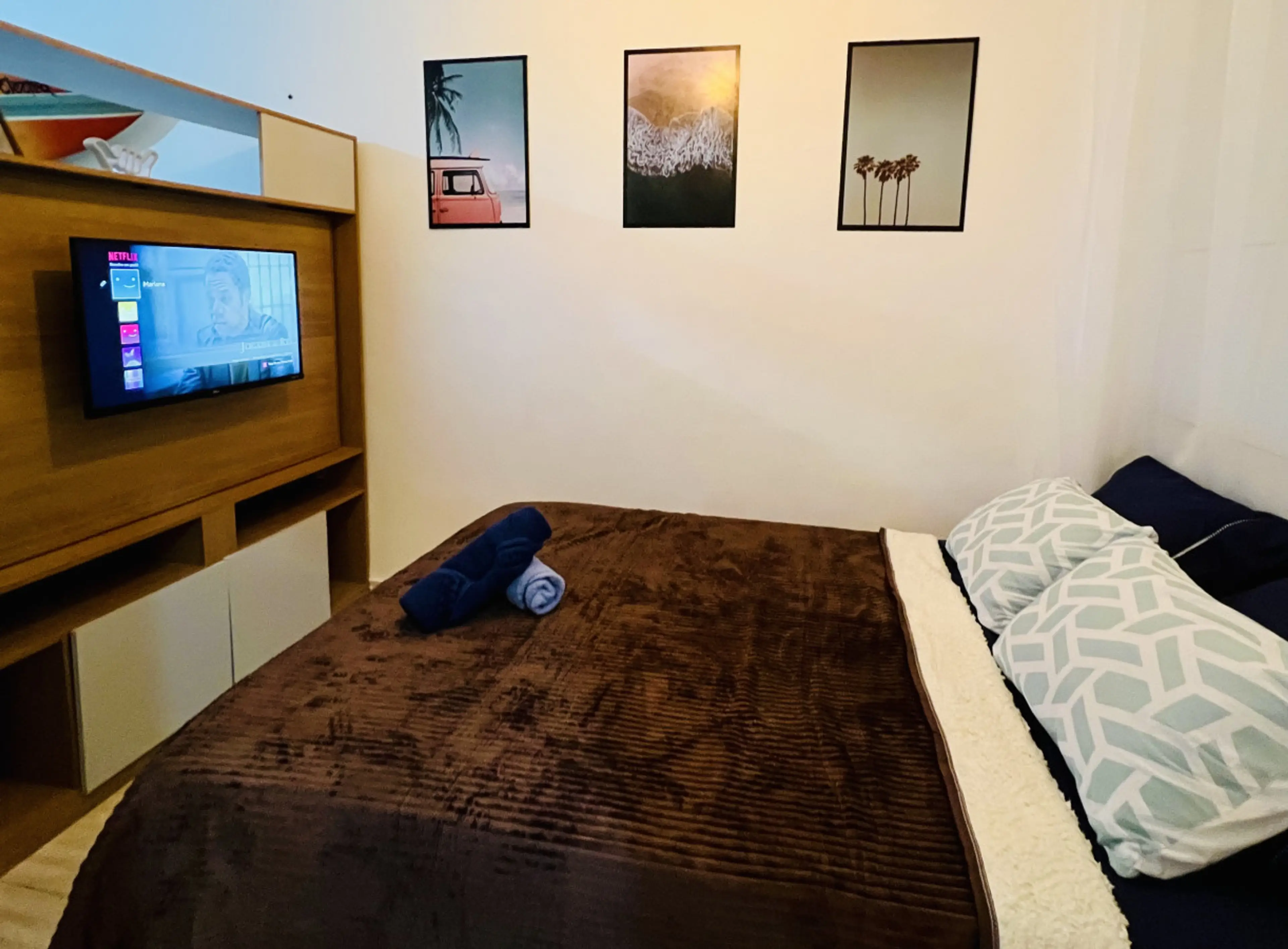 Welcome to our homely little surf house! We have some lovely ocean views and just a 5-minute walk to the beach, close to Sheraton Hotel. Ocean views from your door, enjoy sunrise from the building roof terrace. It's a double studio room with a separate entrance. A pretty cool spinning TV stand to wa...